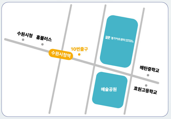지하철: 분당선 수원시청(경기아트센터)역 10번 출구에서 도보 300m