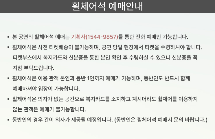 휠체어석 예매: 예매처 고객센터를 통해 별도 문의 필요