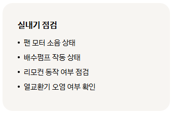 - 에어컨 시험 가동으로 냉방 기능 확인