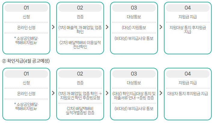 2025년에는 대출 상환기간 연장과 대환대출(2년 거치 8년 분할상환) 상품이 신설되어 이자 부담을 줄일 수 있습니다. - 💳 배달·택배비 지원 : 연 매출 1억4천만원 이하 소상공인에게 연 최대 30만원의 배달·택배비를 지원합니다.