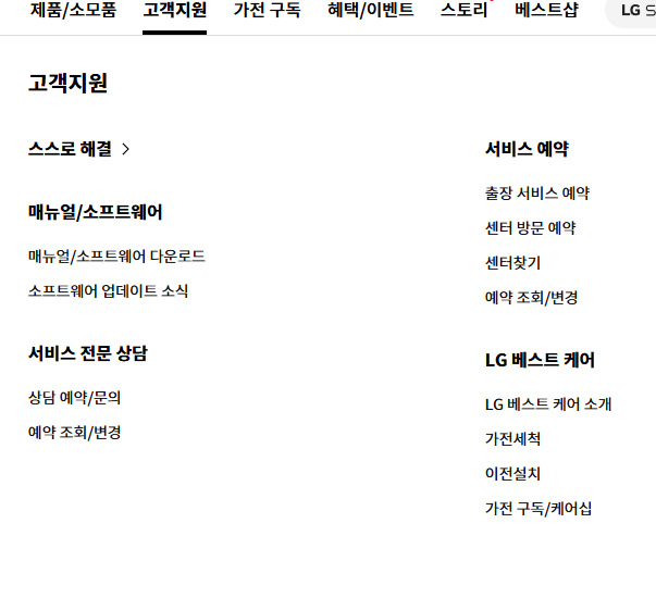 LG전자 고객센터를 통한 신청